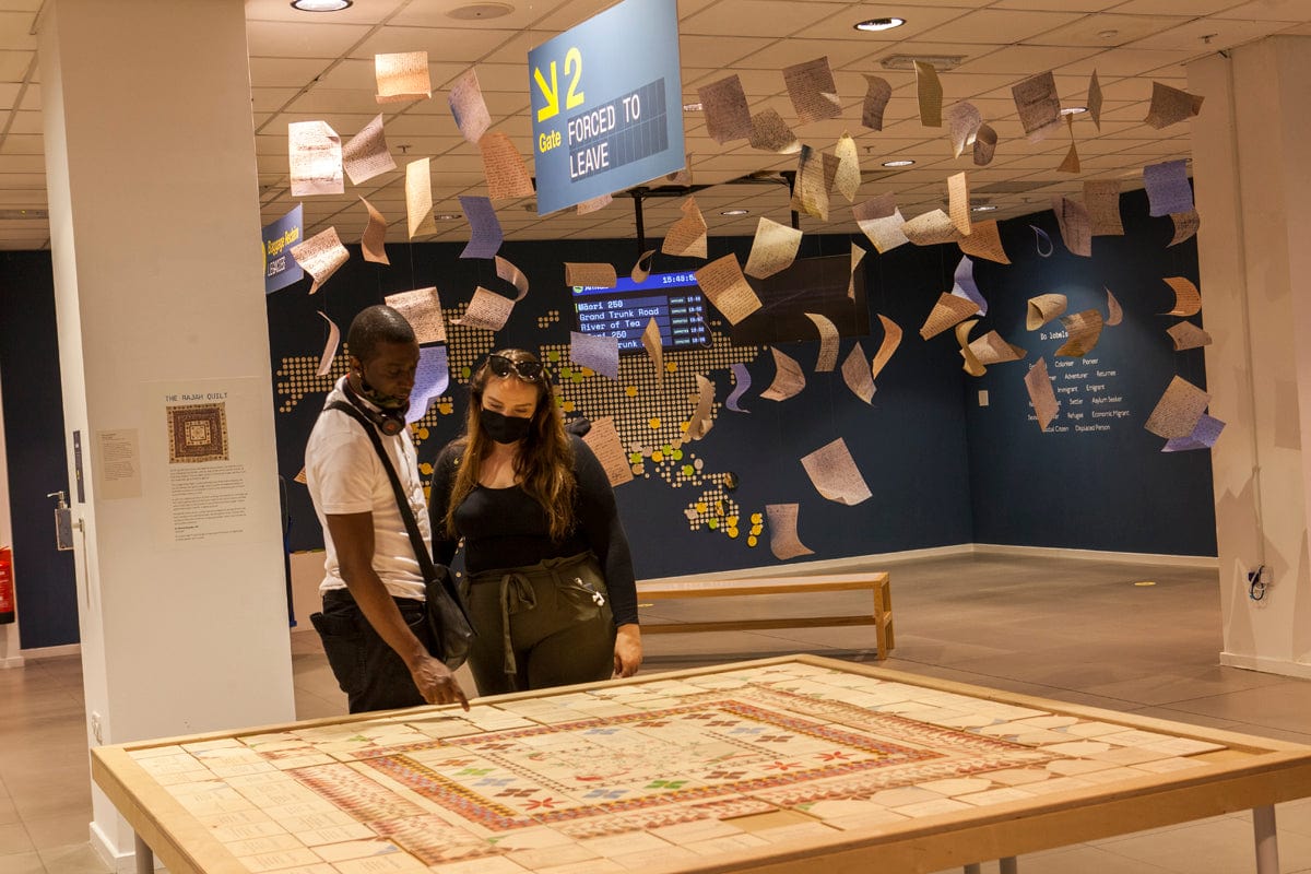In order that we are able to offer a wide range of sizes and variations of our most popular design, we work with a print-on-demand clothing company. These items will be fulfilled separately from other items ordered from the Migration Museum and will arrive separately.