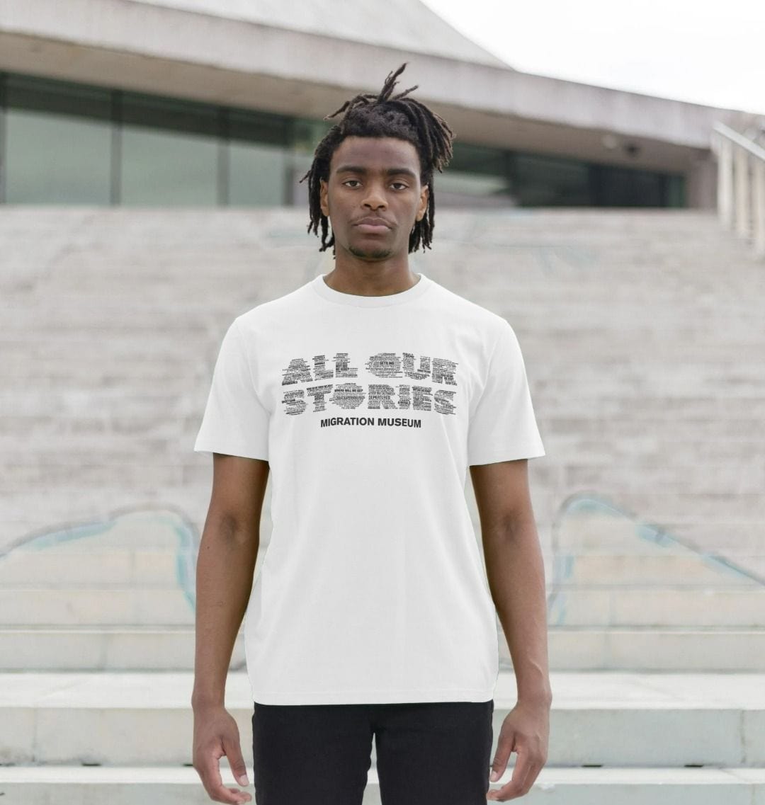 In order that we are able to offer a wide range of sizes and variations of our most popular design, we work with a print-on-demand clothing company. These items will be fulfilled separately from other items ordered from the Migration Museum and will arrive separately.