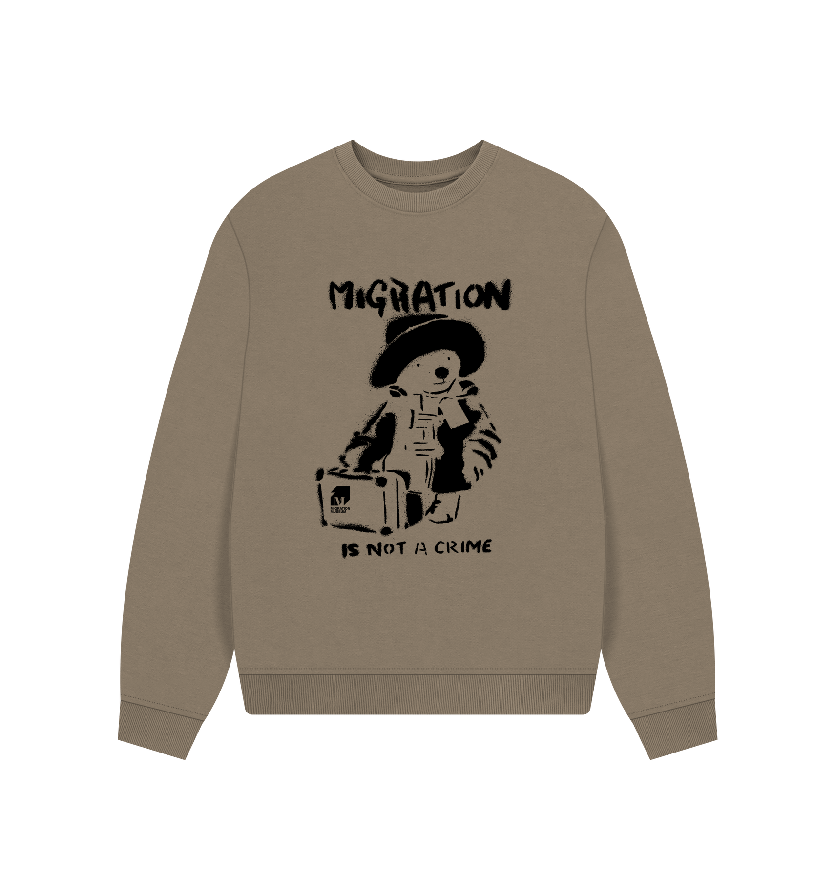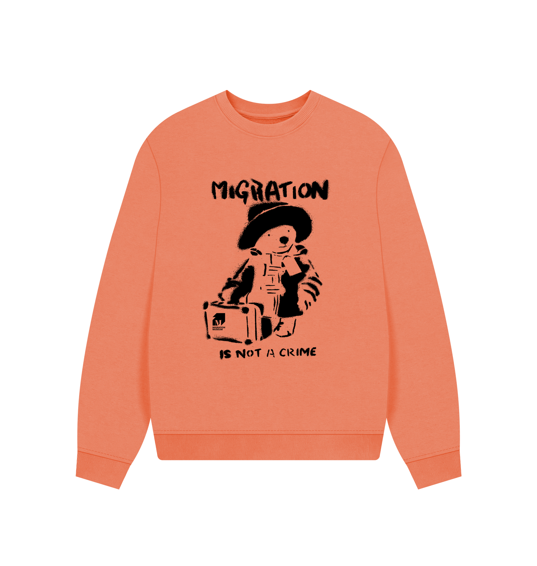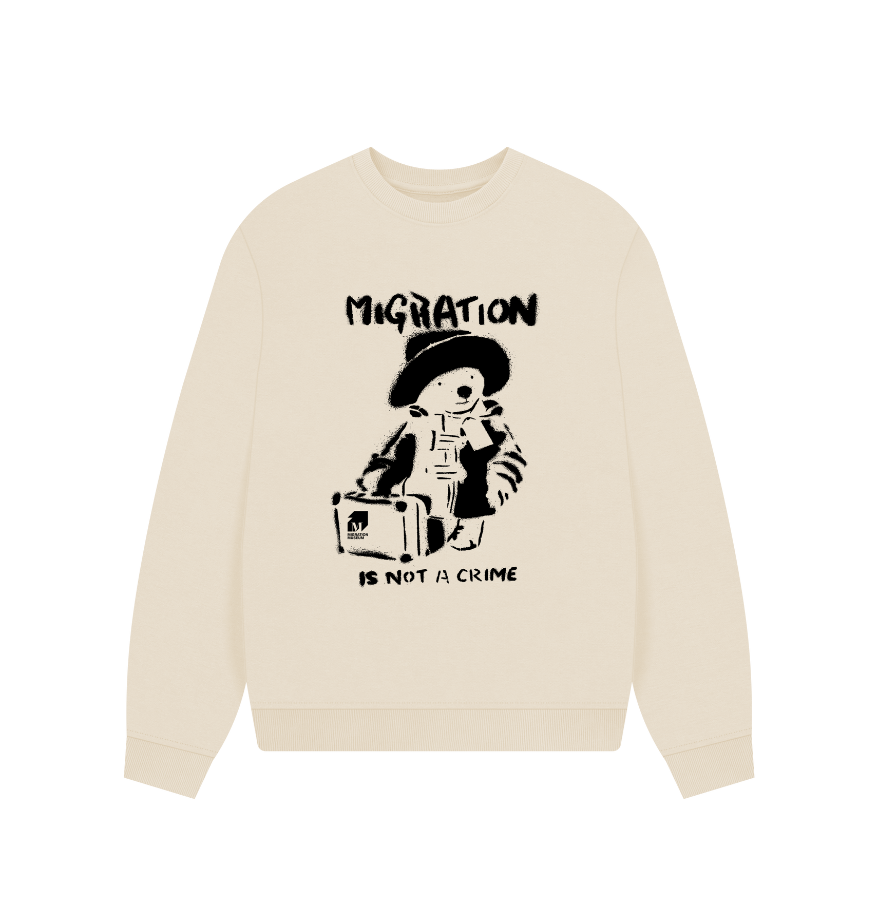 Now available in oversized! Check out our popular Migration Is Not A Crime design printed on to an organic cotton oversized sweatshirt.