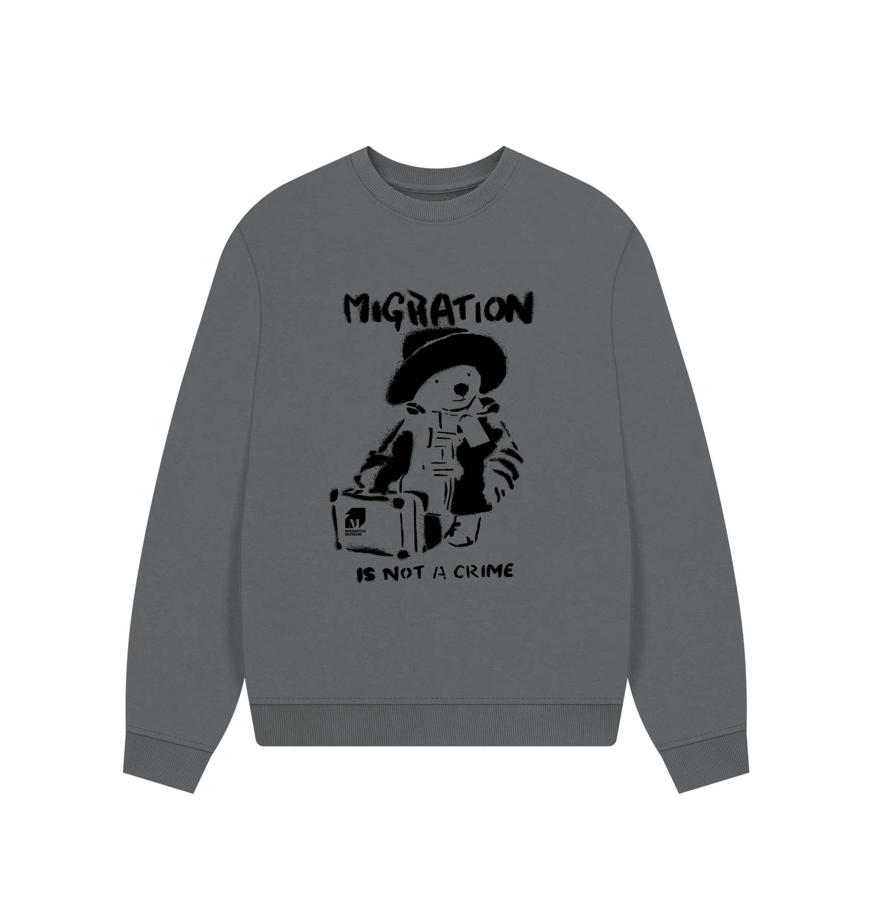 Slate Grey Migration Is Not a Crime - Organic Cotton Women's Oversized Jumper