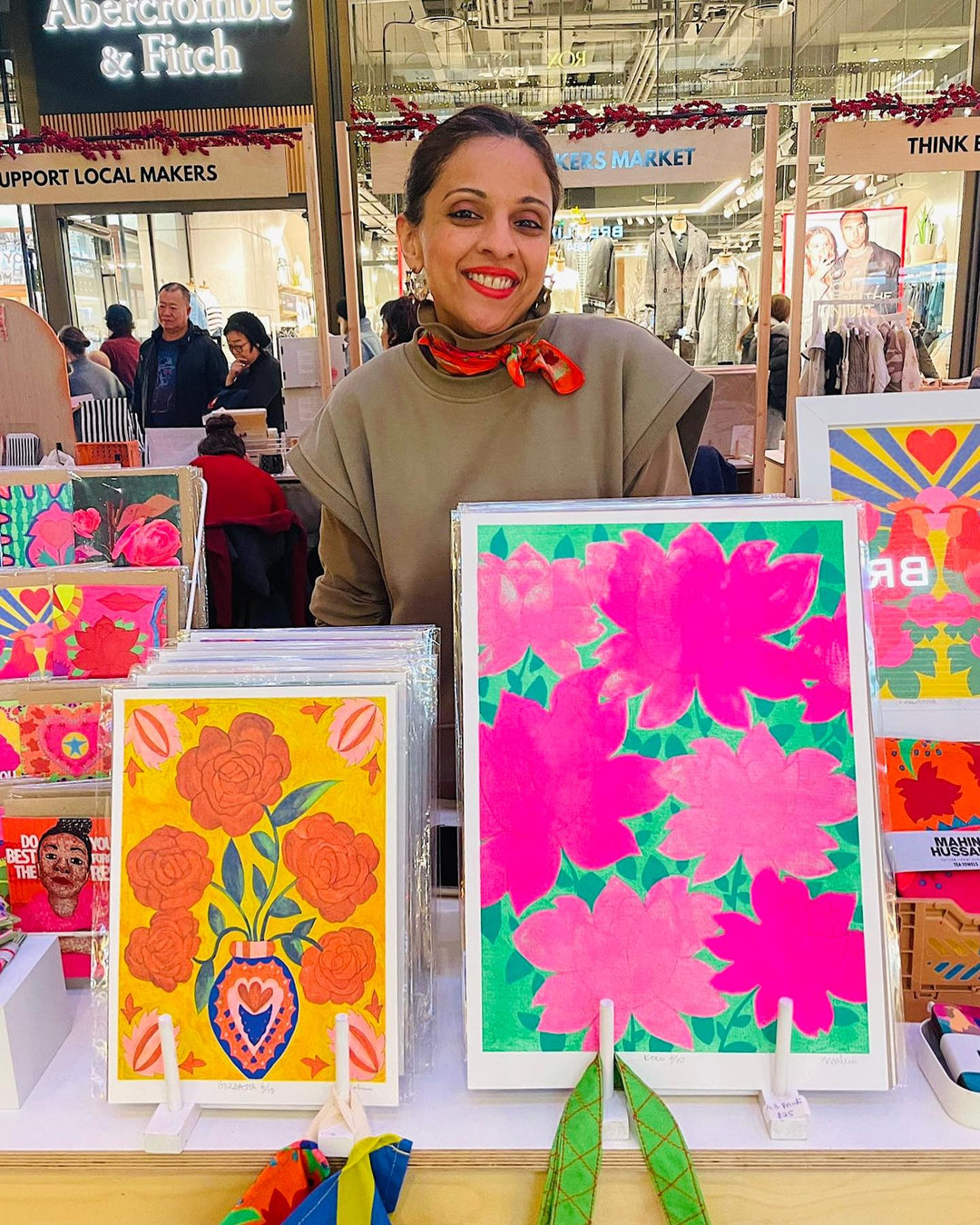 Mahin Hussain Accessories is a very loud bright label which works with fabric and print.
